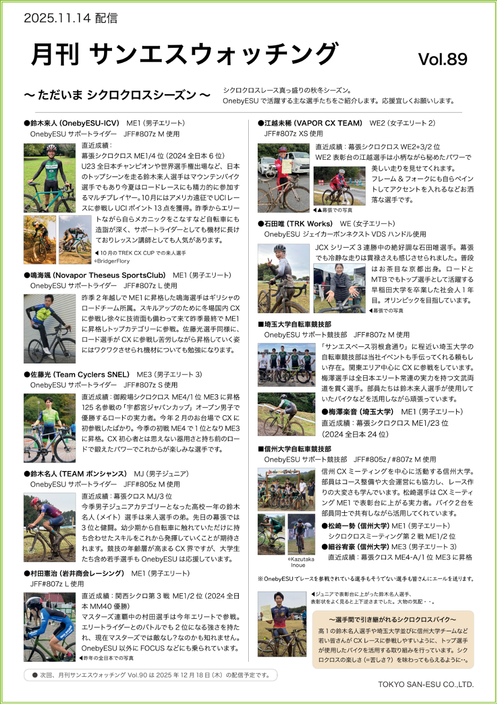月刊サンエスウォッチング Vol.89 2025年11月14日 最終更新日時 : 2025年12月25日 tsss_kanri サンエスオリジナル製品などを毎月テーマごとにご紹介する『月刊サンエスウォッチング』を本日掲載いたしました。毎月第2金曜日の発行予定です。 〜ただいま シクロクロスシーズン〜 PDFはこちら FacebookX